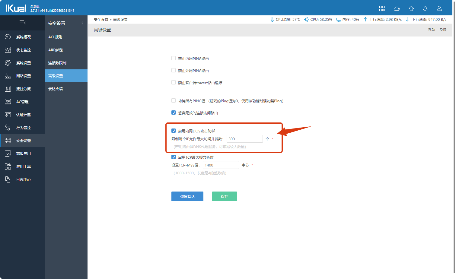 ikuai软路由web界面访问一段时间后,提示无法访问